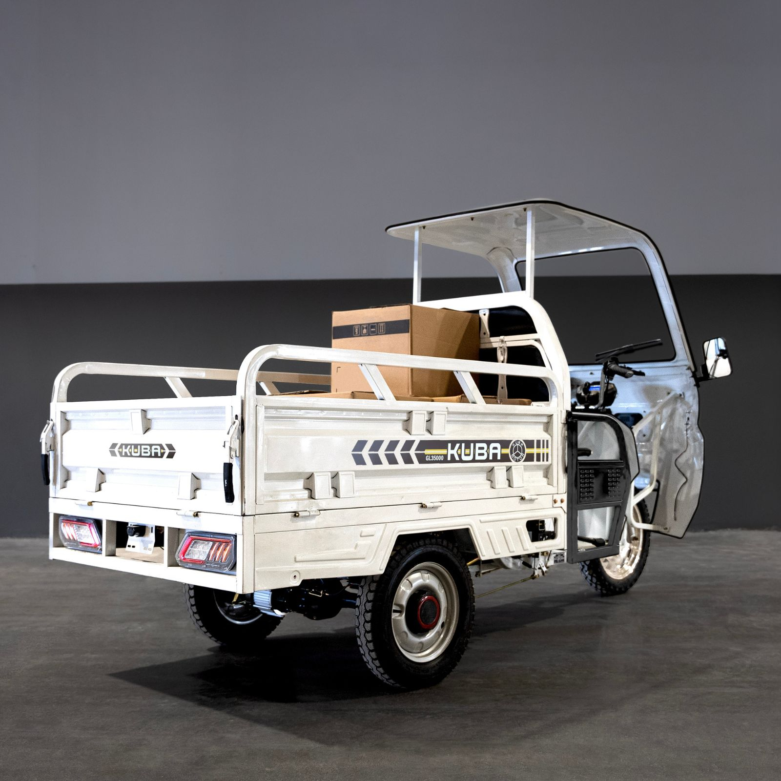 🚛TRICICLU ELECTRIC KUBA GL35000 – FARA PERMIS⚡ CULORI - ALB/ALBASTRU KUBA GL35000 este triciclul electric perfect pentru transportul de materiale sau pentru mobilitatea zilnică. Cu o construcție solida și design adaptat pentru activități diverse, oferă o soluție ecologică și eficientă, fiind fără permis la o viteză de 25 km/h. Specificații Tehnice:
